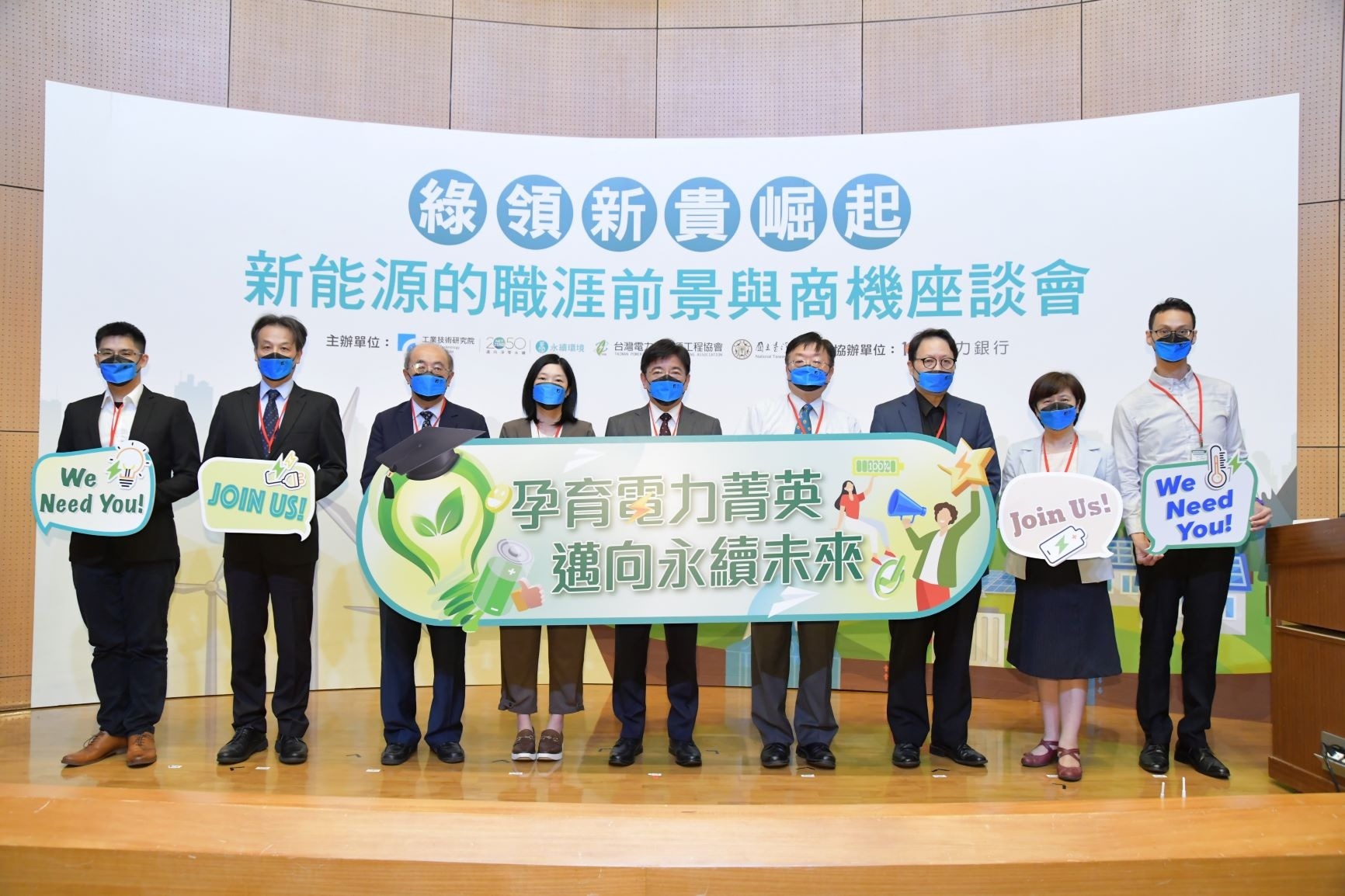 工研院於8月舉辦「電網人才發展聯盟獎學金頒獎典禮暨人才趨勢講座」,除了嘉勉電力新秀,同時也邀請產官學研分享新能源人才趨勢。為了延續電力人才培育熱度,工研院近期再次攜手產學研舉辦「綠領新貴崛起-新能源的職涯前景與商機座談會」,請臺灣大學、104人力銀行、大同公司、台達電等專家及優秀的能源職場新兵,分享新能源產業的商機、職涯前景、產業人才需求、職場競爭力養成及實務經驗傳承等,藉此讓學子深度了解新能源產業具未來性的職涯,畢業後能成為產業中的佼佼者,共同幫助臺灣邁向淨零永續。